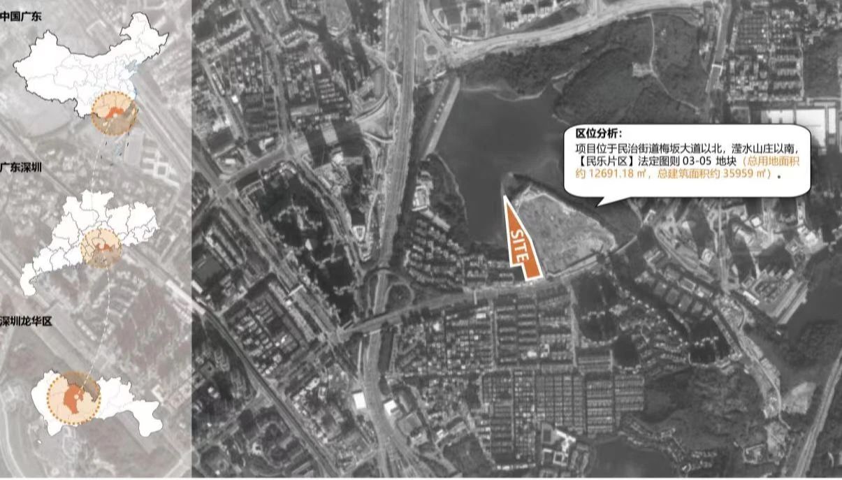 項目位于龍華區(qū)民治街道梅坂大道以北,瀅水山莊以南。南側、西側和東側為二類居住用地,北側為水庫水面。學校總用地面積12691.18平方米,總建筑面積約35959平方米,擬建設一所36班/1620學位小學。