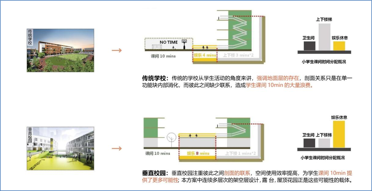 項目周邊交通便捷,生活便利,人口密集,自然景觀豐富,為打造“綠色校園”和“文化校園”提供了良好的基礎。項目組通過連廊設計,將不同空間相互串聯,打造多層次的立體花園景觀,在平面與垂直方向上創(chuàng)造最大化的交往平臺。利用屋頂平臺設置公共空間,將空間還給學生,創(chuàng)造以互動為核心的自然課堂等設計手法打造多元一體化校園,建成后將為龍華區(qū)師生提供一個寓教于樂的理想樂園。