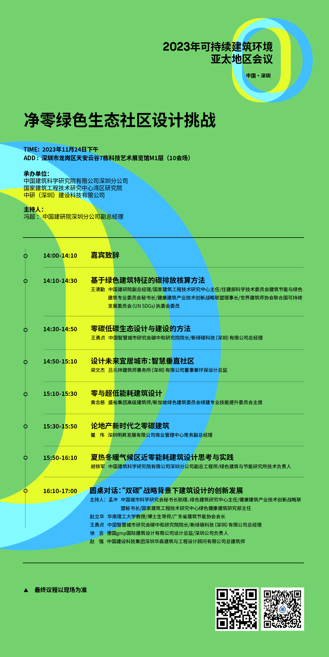 距離2023年可持續建筑環境亞太地區會議-“凈零綠色生態社區設計挑戰”主題論壇召開進入倒計時階段。本次論壇邀請了5位業內技術大咖進行主題為《“雙碳”背景下建筑設計的創新發展》的圓桌對話,精彩劇透先來一睹為快!