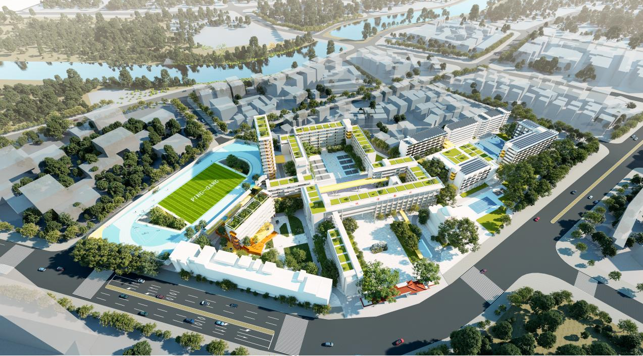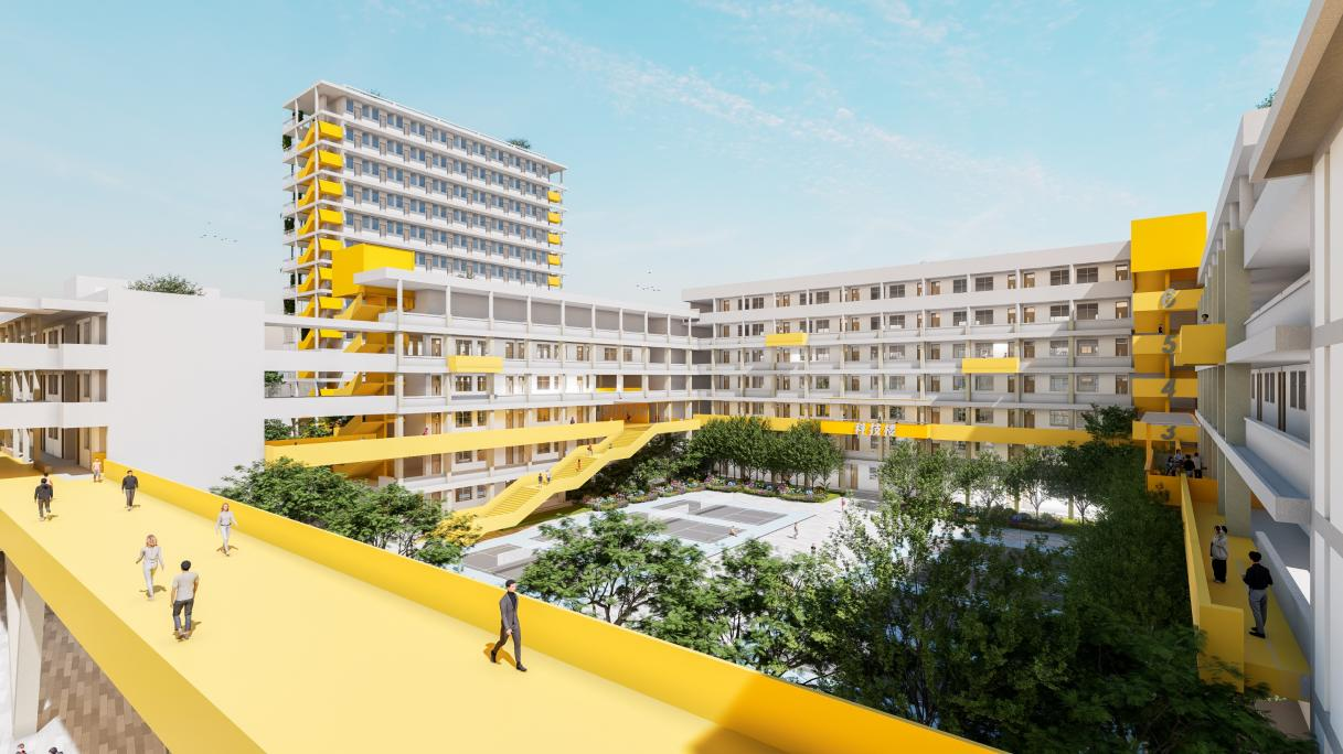 因地處龍崗區(qū)“客韻新城”,毗鄰龍崗河、龍園公園和鶴湖新居客家民俗博物館,周邊交通發(fā)達,生活便利,人口聚集,校園內(nèi)綠樹成蔭、設(shè)施齊全,擁有良好的打造“綠色校園”“文化校園”的基礎(chǔ)。項目組立足校園現(xiàn)狀,通過安全評估、院落織補、空間滲透、連橋搭建等設(shè)計手法打造多元一體化校園,建成后將為龍崗區(qū)師生提供一個安全高效、活力創(chuàng)新的高品質(zhì)學(xué)校。
