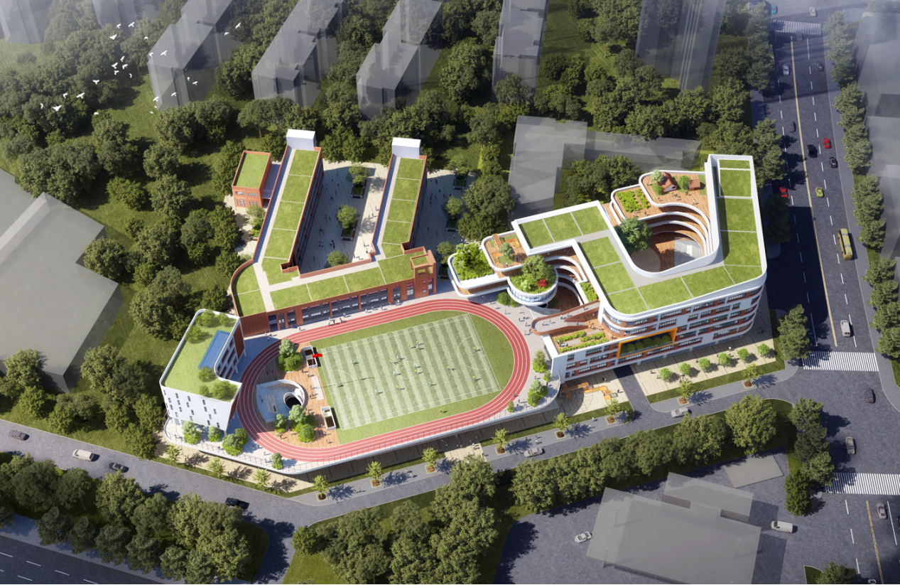 方案設(shè)計由三個獨立又相互連通的架空空間組成,公共空間廊道采用回廊布局,營造濃郁的學(xué)習(xí)氛圍的同時,增加空間的趣味性,以建筑空間教誨學(xué)生“通向羅馬的路不只一條”。屋頂空間結(jié)合“念農(nóng)”菜園和雨水回收系統(tǒng),豐富孩子們的課外實踐活動,引導(dǎo)孩子全能發(fā)展,教誨學(xué)生“飲”水思源。課間活動空間采取層層退臺形式,設(shè)置豐富有趣的對視路徑,視線寬廣明朗,空間開闊,退臺面與幼兒園可以形成對視,進而引發(fā)學(xué)生對于“過去”、“成長”和“未來”的思考。
