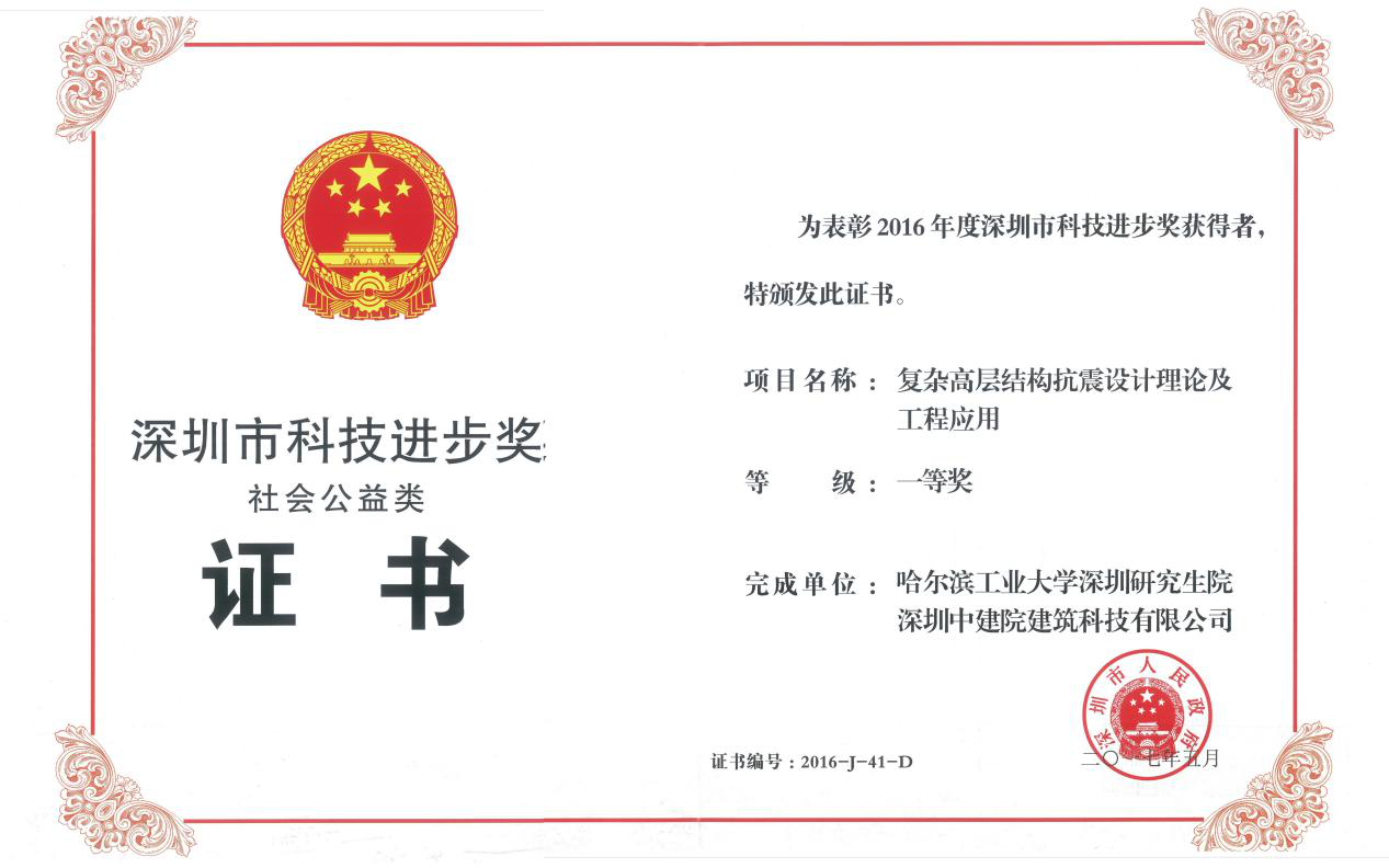 一是堅持自主創新,科技成果獲得重大獎項。由深圳中建院和哈爾濱工業大學(深圳)合作完成的課題《復雜高層結構抗震設計理論及工程應用》獲2016年度深圳市科技進步獎一等獎、2017年度廣東省科學技術獎一等獎。