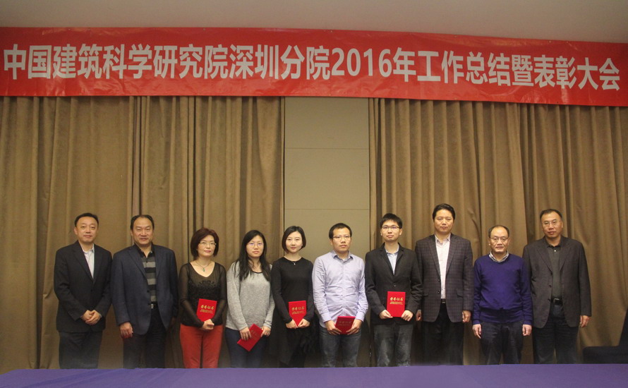 2017年1月12日,“中國建筑科學研究院深圳分院2016年工作總結暨表彰大會”在深圳召開。我院領導班子成員、各部門負責人、專業(yè)總工,以及我院2016年優(yōu)秀經營管理者、先進工作者和優(yōu)秀青年獲得者30余人參加了會議。總院王清勤副院長、人事處宋建農處長、工會戴奇主席和黨辦宋兆康同志應邀出席了會議。會議由我院黨總支書記、副院長何春凱主持。
