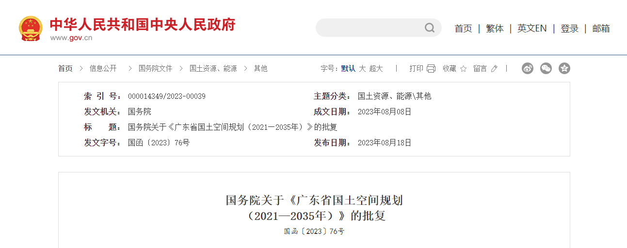 國務院關于《廣東省國土空間規劃(2021—2035年)》的批復