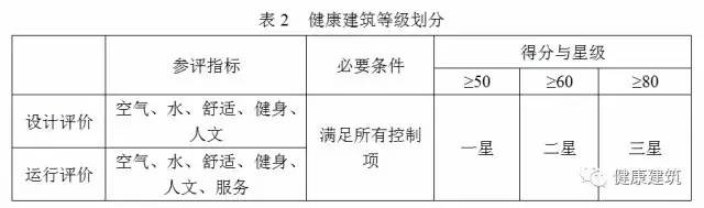 第3.2.8條規定了健康建筑的等級劃分。為使健康建筑的健康性能更為直觀的表現出來,《標準》對健康建筑的健康性能進行了等級劃分,詳見表2。