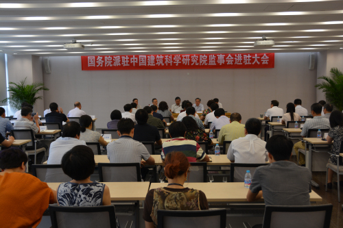 8月25日,國務院派駐中國建筑科學研究院監事會進駐大會在院新科研樓召開。國務院國有重點大型企業監事會主席李東序,監事會19辦主任史軍、副主任鄭新軍及全體專職監事和工作人員出席會議。會上,史軍主任宣讀了國資委《關于派駐中國建筑科學研究院監事會的通知》,李東序主席做重要講話,王俊院長代表院領導班子做表態發言。李洪鳳書記主持會議。